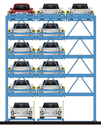 升降橫移類機械式停車設(shè)備是停車行業(yè)應(yīng)用廣泛的一類停車產(chǎn)品,型式比較多,并且可以采用地面上結(jié)合基坑的形式,此類設(shè)備對場地的適應(yīng)性較強,對土建要求較低,可建在露天,也可建在大樓的地下。規(guī)模可大可小,可根據(jù)不同的地形和空間進(jìn)行任意組合、排列,空間利用率高,設(shè)備穩(wěn)定可靠,存取車快捷,使用維護(hù)簡便,價格較低。